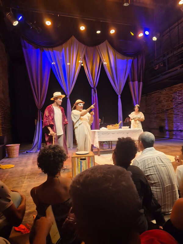 Já a bailarina e coreógrafa Léna Blou, de Guadalupe, vai transformar a história colonial da cana-de-açúcar em dança contemporânea, explorando as conexões dolorosas entre Caribe e Nordeste brasileiro através do espetáculo Le Sacre du Sucre (A Sagração do Açúcar). Por  outro lado, o coletivo argentino BiNeural-MonoKultur promete transformar o jardim do Teatro do Parque numa pista de dança com Dancemos… que o mundo se acaba!, obra performática que mistura dança, música eletrônica e interação direta com o público. E fechando o festival, a lendária Germaine Acogny – considerada a “mãe da dança contemporânea africana” – apresenta À un endroit du début, misturando danças tradicionais senegalesas com técnicas contemporâneas que aprendeu durante os anos 1970 em Nova York.