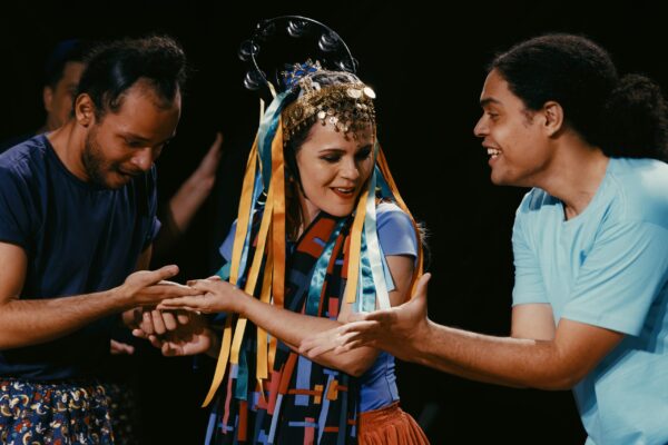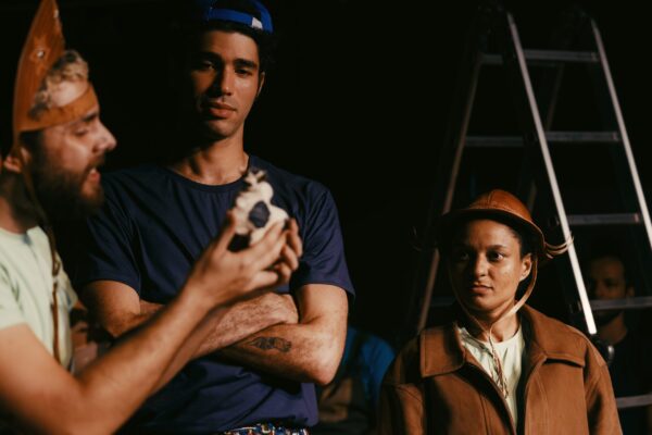 O elenco – Anne Andrade, Bibi Santos, Caví Baso, Diogo Cabral, Djalma Albuquerque, Bruna Flores, Eva Oliveira, Felipe Prado, Fanny França, Igor Henrique, Lívia de Souza, Márcio Allan e Mateus Condé – revela diferentes graus de amadurecimento cênico. Alguns ocupam a cena com mais propriedade, estão mais brilhantes em suas performances, enquanto outros ainda exploram suas descobertas cênicas. Mas o teatro não tem contraindicação. Essa diversidade de momentos formativos enriquece a textura humana do espetáculo. Há uma generosidade cênica que nasce dessa entrega ao experimento coletivo.